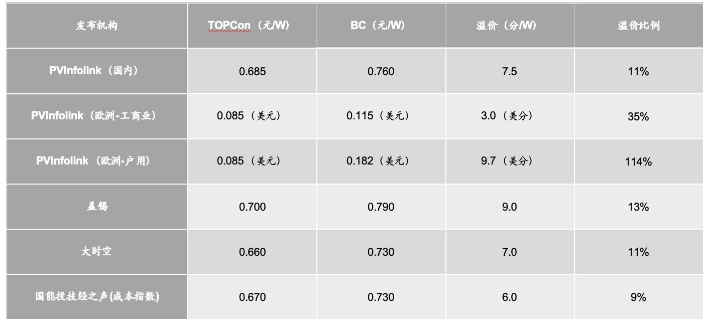 业绩向好的背后,是BC技术带来的产品溢价和市场认可度提升。据多家第三方机构数据,BC组件在国内市场较TOPCon产品溢价9-13%,在欧洲市场溢价更为显著:工商业场景溢价达35%,户用场景溢价高达114%。