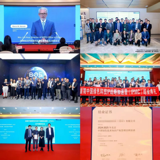 2024年10月至2025年4月,首期中国绿色科技IP战略加速营(IPMC)邀请11位国内外导师为25家绿色科技企业提供了系统性知识产权支持,包括3场集中培训、1次京东方集中考察学习及近百场1对1辅导,为所有入营企业定制专属知识产权战略路线图,并颁发WIPO出具的结业证书。参与企业中,已有多家企业启动了美国、日本、欧洲等市场的国际专利布局,完善了技术秘密保护体系,启动了商标与品牌保护工作,实现了从“技术创新”到“构建知识产权竞争力”的跨越式发展。