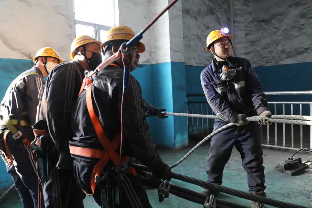 2025年2月26日,为提高提升系统运行的稳定性和可靠性,六家矿决定对主、副井提升钢丝绳一并进行更换,此项任务需在6个小班48个小时内完成,为此区队进行了工作动员,成立了一支由30多人组成的突击队投入到了战斗中。