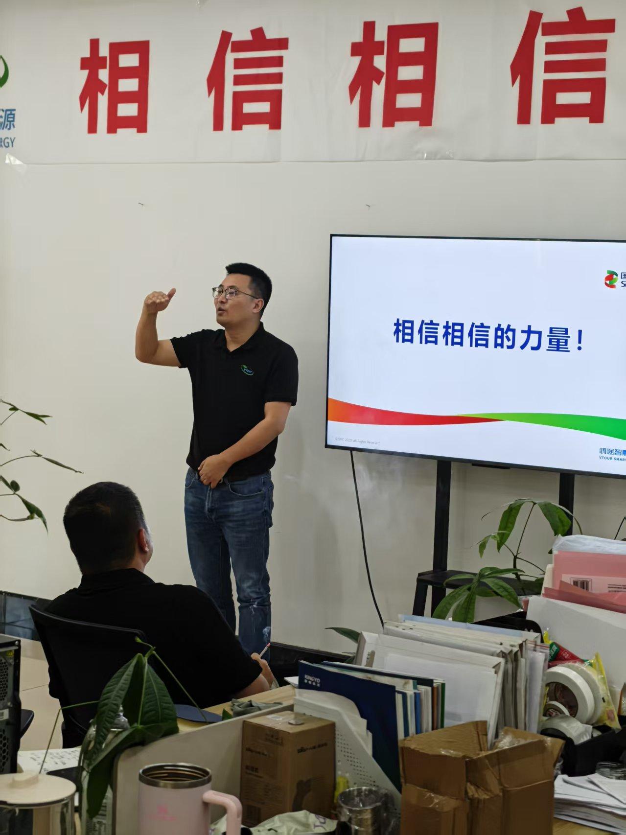 电影结束后,公司组织了以“信念与使命”为主题的交流讨论会。大家围绕“如何将本职工作与中华民族伟大复兴相结合”展开热烈讨论。多位同事提到,正是凭借着“相信相信的力量”这一企业信念,才能在技术研��与市场推广中不断突破困境、坚定前行。公司董事长厉蒋在总结发言中强调:“‘相信相信的力量’,意味着既要相信我们的国家正走在正确的道路上,也要相信我们自己有能力为这条道路添砖加瓦。鸿途智慧虽然是一家小企业,但我们的梦想并不小。我们打造的换电生态系统,不仅是一项商业模式,更关乎国家的节能减排战略、能源安全布局,乃至中华民族的可持续发展。”他进一步分析指出,目前传统燃油轻卡仍占主流,所带来的环境污染与能源消耗问题不容忽视。而换电型轻卡作为新能源物流运输的重要一环,具有环保、高效、运行成本低等多重优势。“每多推广一台换电轻卡,每多建一座换电站,都是在切实地为减少碳排放、降低石油依赖贡献力量,这也是在以实际行动守护祖国的绿水青山,保障国家的能源安全。”