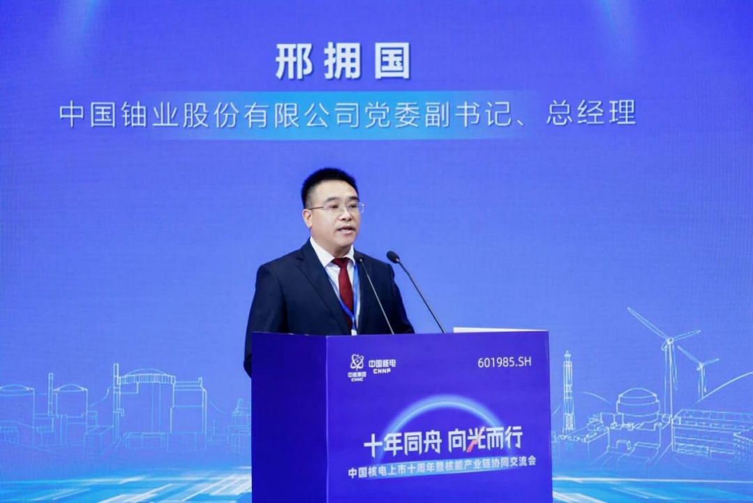 刘建平在致辞中高度肯定中国核电十年来取得的卓越成就。他指出,中国核电以实际行动践行了集团党组的战略部署,以优秀的经营业绩和规范的市值管理回报投资者信任。中核集团将一如既往支持中国核电在资本市场的各项工作,将中国核电打造成为中核集团上市公司的标杆,树立中核集团“信得过、靠得住”的优秀上市品牌,让所有投资者共享核工业发展的红利,为实现“双碳”目标、建设核电强国作出更大贡献。