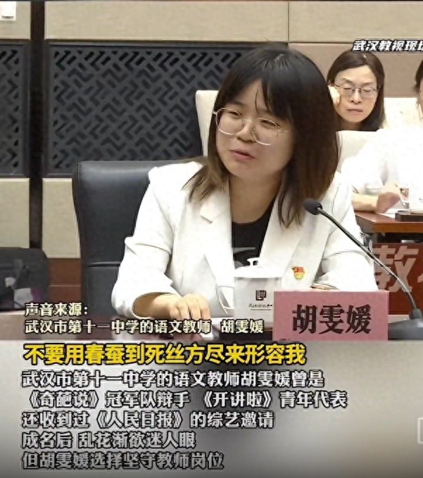 近日,武汉市第十一中学语文教师胡雯媛,在武汉市优秀教师代表座谈会上的发言引发热议。