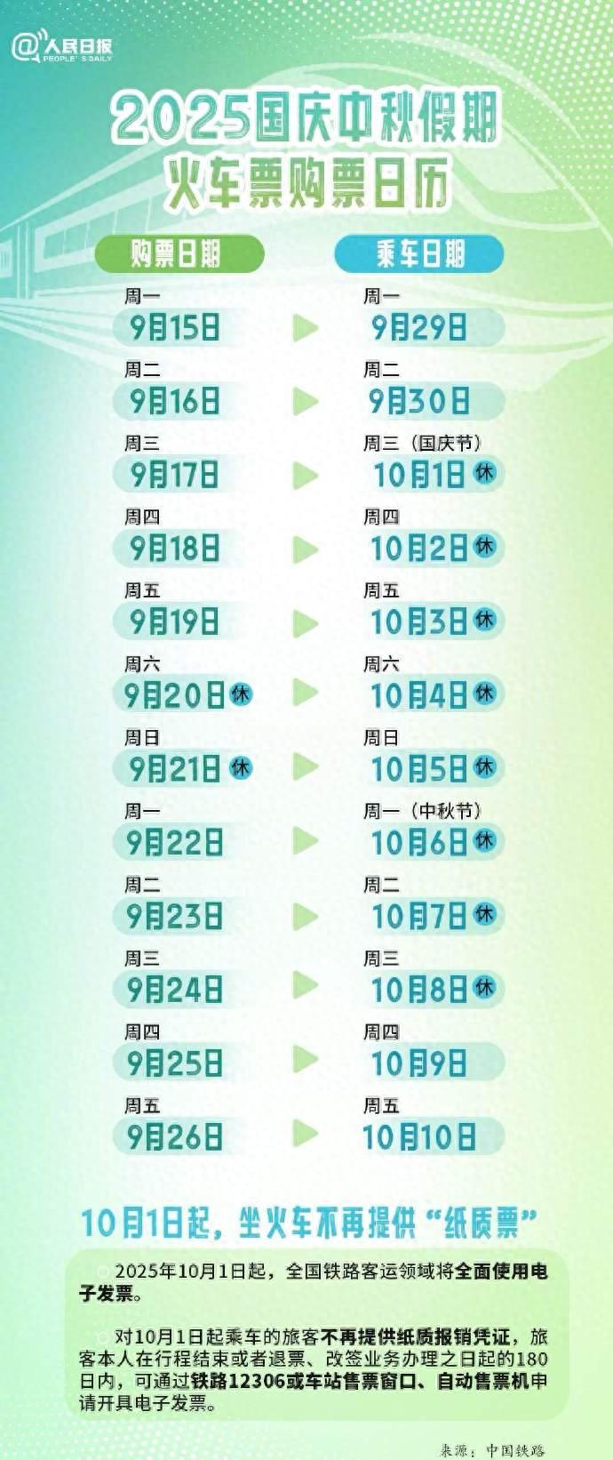 9月22日售中秋节(10月6日)火车票