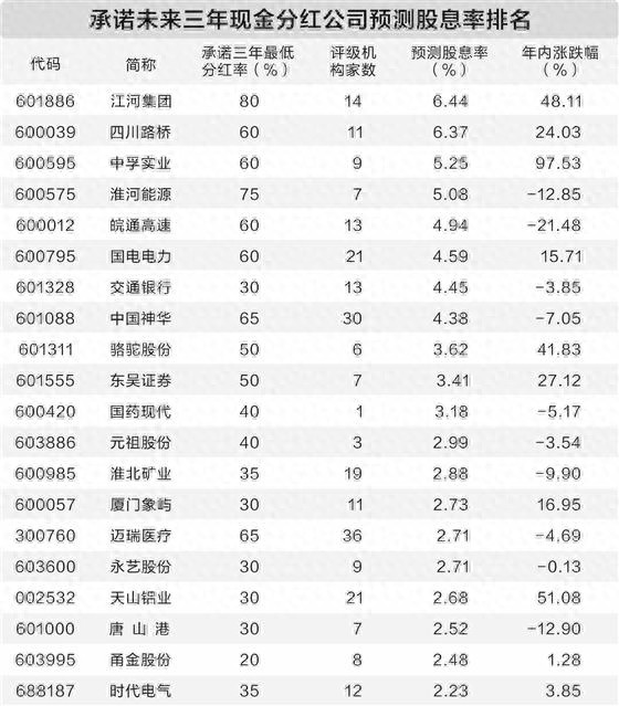 排名居前的还有国电电力、中孚实业、皖通高速、四川路桥等个股,分红率均不低于60%。
