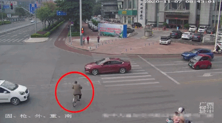 2020年,广西柳州一位老人骑自行车行驶至事发路口时,交通信号灯显示为红灯,自行车未按照红灯信号等候通行,强行穿过路口,撞上一辆小轿车。