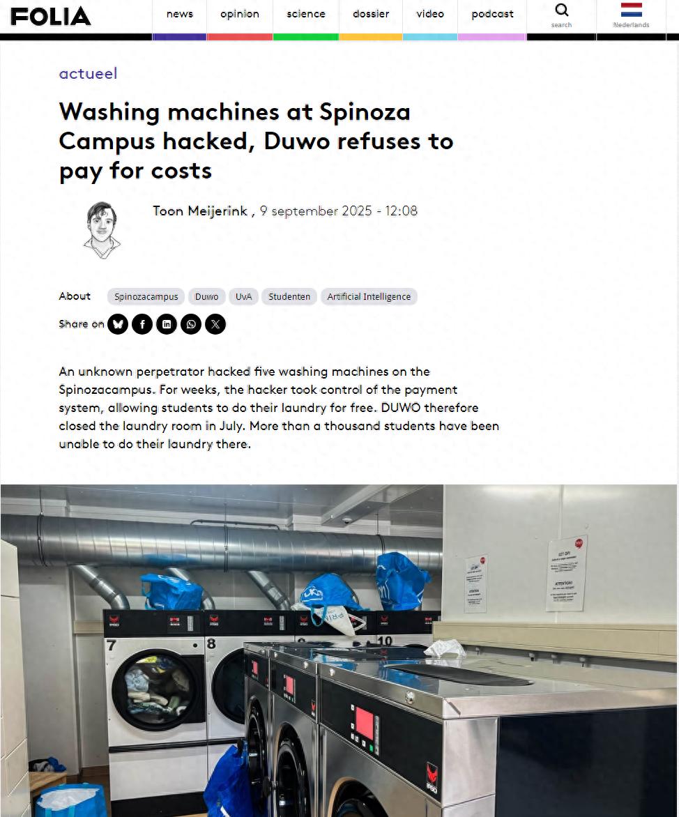 一名未知黑客入侵了接受数字支付的智能洗衣机,荷兰阿姆斯特丹超一千名学生可免费洗衣服。
