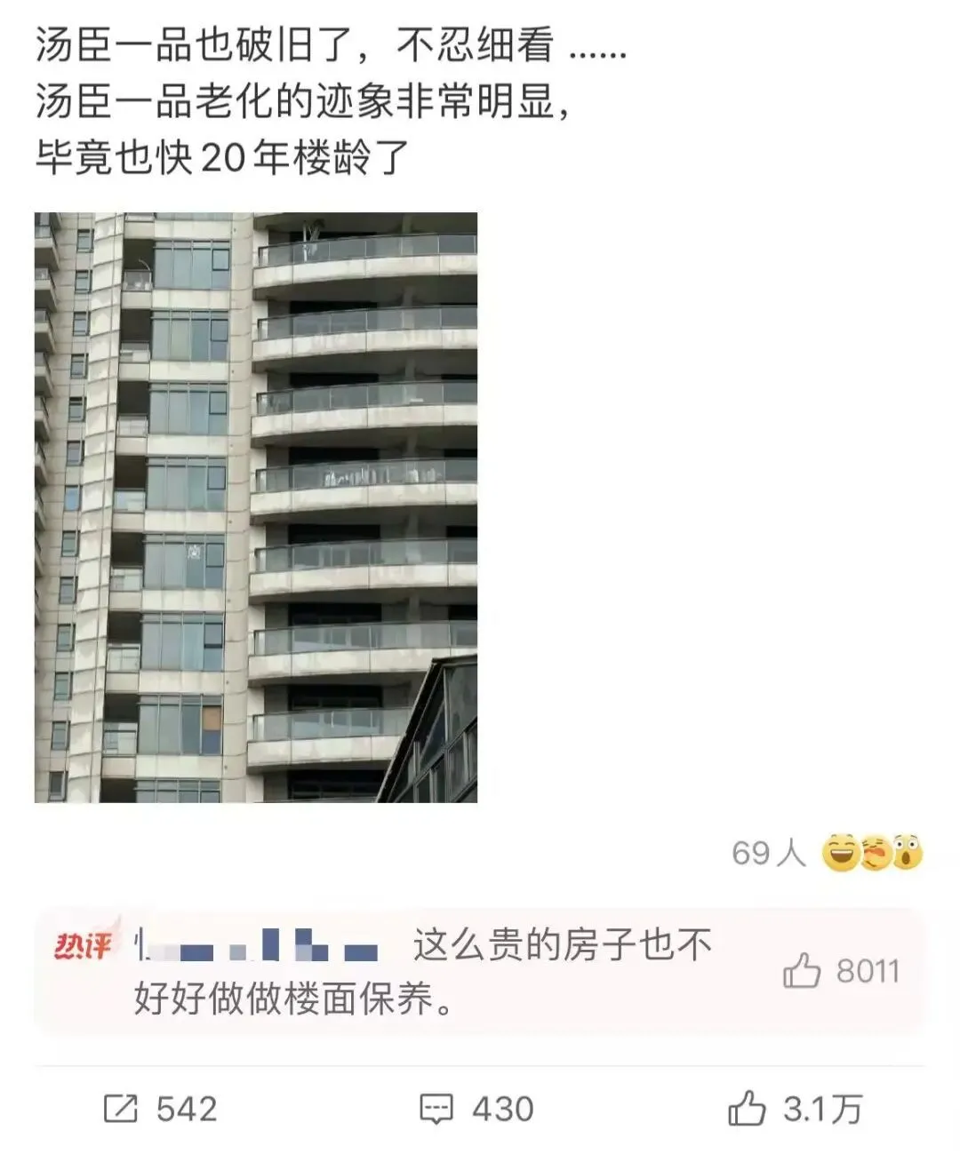 这一表态迅速引发进一步讨论,有网友质疑:“不到20年就显旧,这样的维护标准如何匹配其天价?”