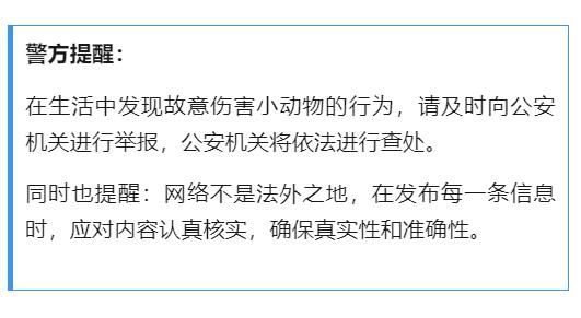 9月8日,贵阳市公安局云岩分局文昌阁派出所接到来大量举报,称在贵阳市文昌阁附近存在虐猫行为。对此,文昌阁派出所立即开展走访调查,并对附近近一个月的监控视频进行回溯,但均未发现虐猫情况。