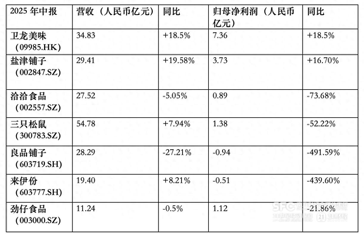 在辣条和魔芋等核心大单品驱动下,卫龙美味2025年上半年实现营收34.83亿元,同比增长18.5%,净利润7.36亿元,同比增长18.5%。
