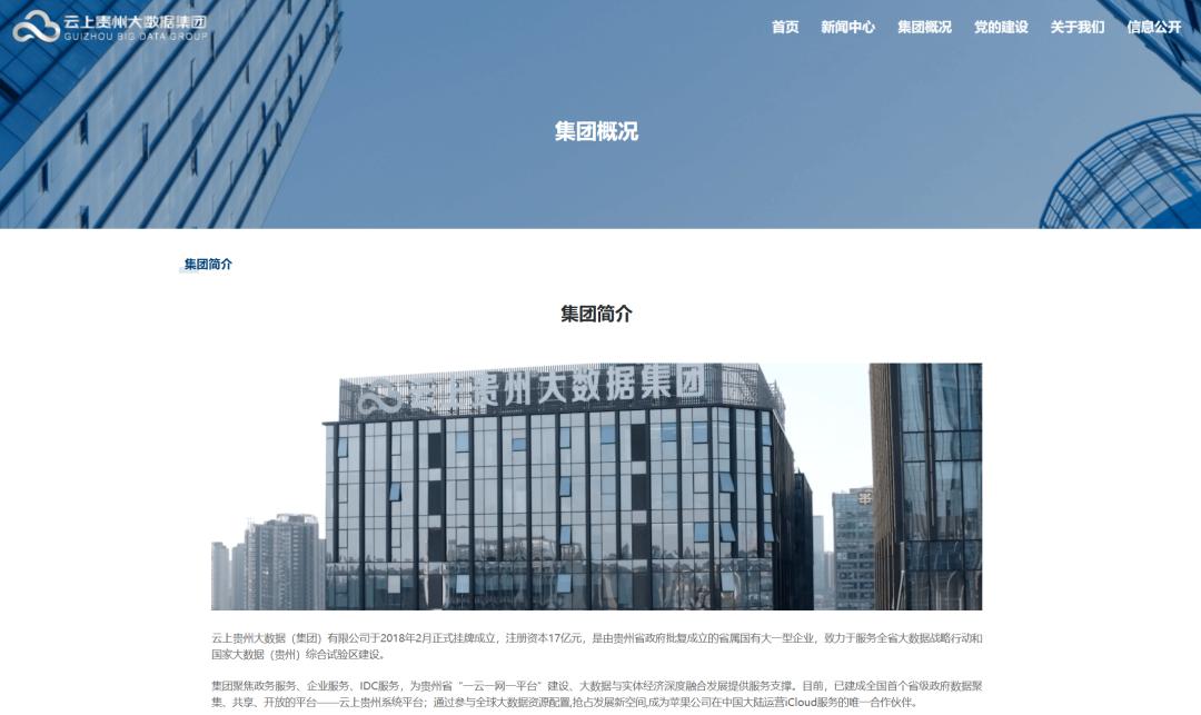 云上贵州官网显示,云上贵州大数据(集团)有限公司于2018年2月正式挂牌成立,注册资本17亿元,是由贵州省政府批复成立的省属国有大一型企业,致力于服务全省大数据战略行动和国家大数据(贵州)综合试验区建设。
