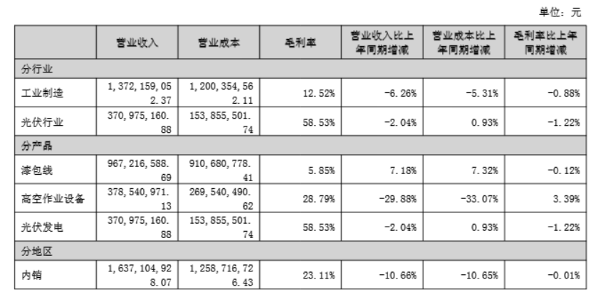 露笑科技在财报中明确将业务分为六大板块:高空作业设备、光伏发电、漆包线、机电设备、汽车配件及其他,并没有碳化硅相关业务的直接描述。此外,分产品中的其他选项也并没有批注解释产品类别。露笑科技证券事务部负责人对界面新闻记者表示:“公司碳化硅相关产品目前产能进度有所突破,不过对于公司整体业绩而言影响较为有限。半年报中没直接披露相关业绩情况,投资者可参考合肥露笑半导体材料有限公司(下称‘合肥露笑’)的经营情况,该公司是碳化硅业务的主要实施主体。”