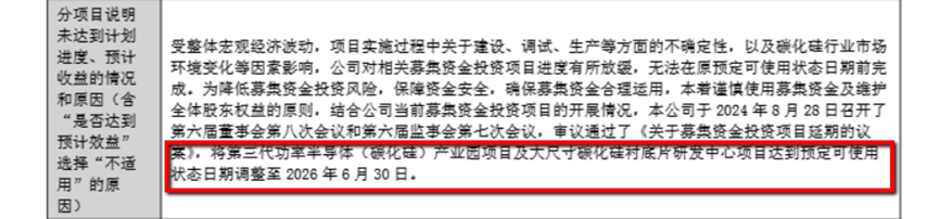 界面新闻记者查询发现,露笑科技将项目完成时间从2026年6月1日前延至2026年6月30日。虽仅延期 1 个月,但侧面反映推进阻力。截至6月30日,碳化硅产业园项目累计投入金额1.22亿元,投资进度6.3%;研发中心项目投入6191万元,进度13.91%。后续能否如期完成规划产能仍需持续跟踪。