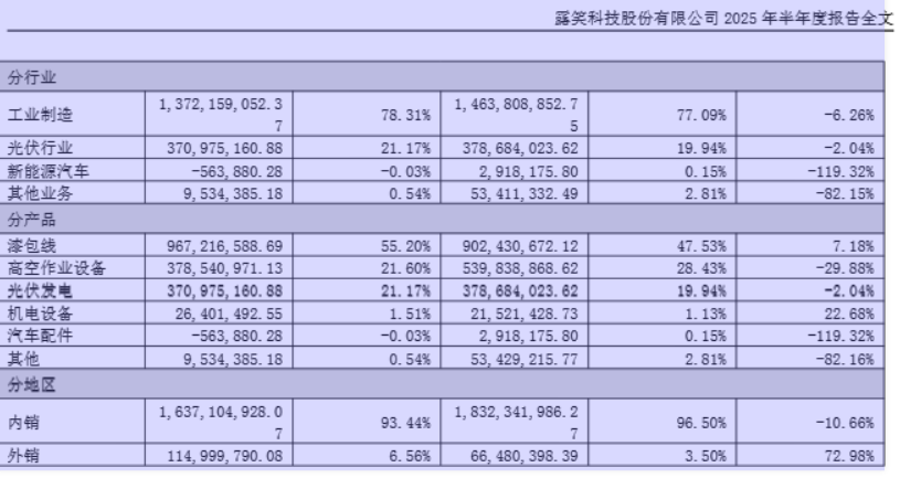 从露笑科技营收结构看,上半年漆包线业务占55.20%,毛利率为 5.85%,对利润贡献有限;高空作业设备(登高机)业务增长放缓,营收占比达21.68%,并且面临行业竞争加剧的风险;碳化硅作为新业务如前所述规模尚不足以支撑整体业绩增长。