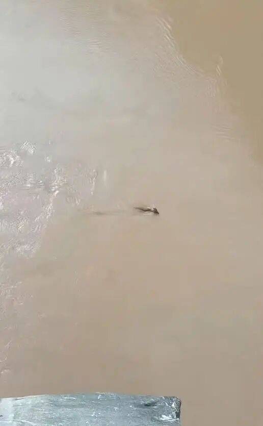 视频显示,有黄色不明生物在虎跳峡水中游,形状不像鱼类,头上有角,身长而直。视频拍摄者惊呼:“是龙吗?”