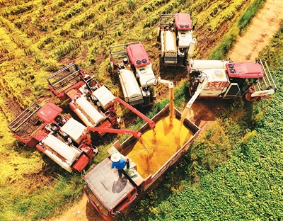 图为9月11日,四川省达州市渠县宝城镇马鞍村农民在装卸刚收割的稻谷。