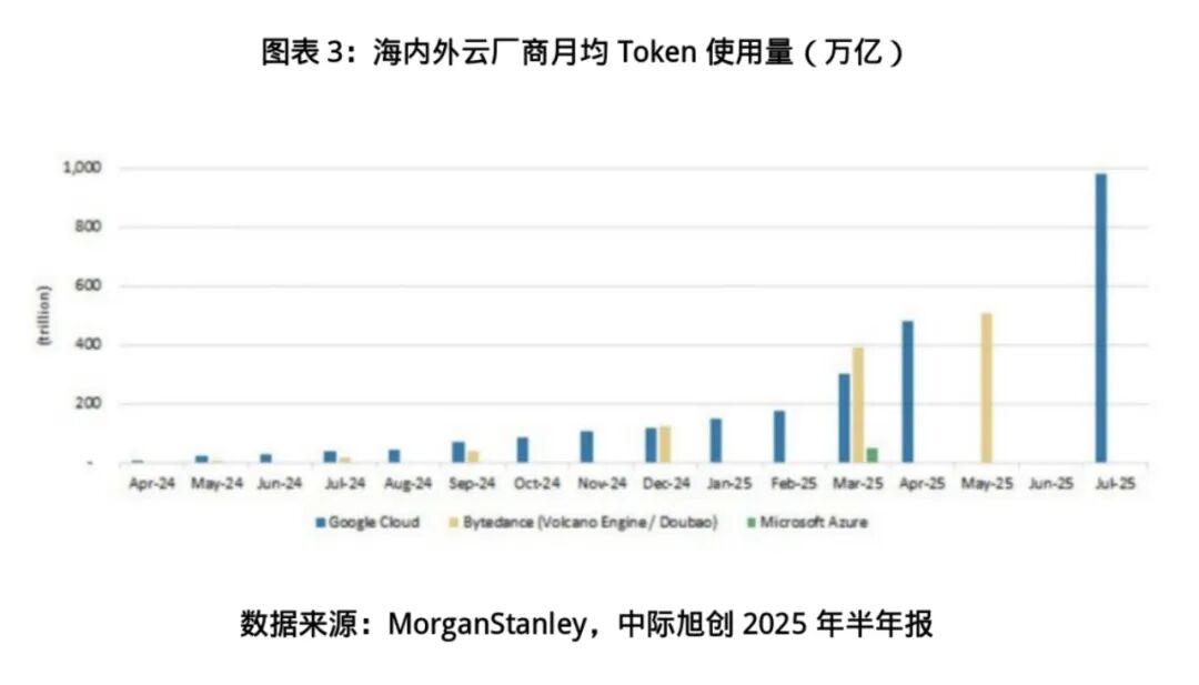 随着ChatGPT、DeepSeek、豆包等大模型技术的兴起,海内外云厂商AI应用的Token处理量激增。比如,谷歌月均Token处理量从今年5月的480万亿增至7月的980万亿,字节跳动豆包大模型月均Token处理量也突破500万亿。未来AI大模型的广泛应用将进一步推升推理与训练算力需求,直接带动数据中心光模块市场规模增长。
