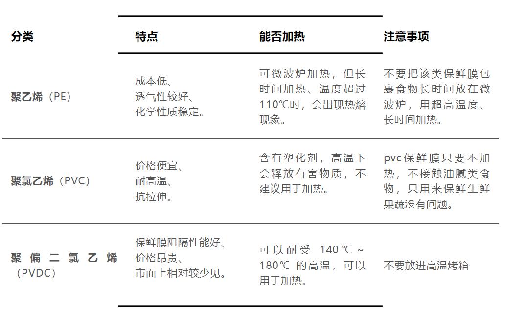 对于大家担心会致癌的“增塑剂”问题,含有增塑剂(DEHP)的聚氯乙烯(PVC) 保鲜膜确实存在一定风险,但只要不接触油脂类食物,不加热,则无需担心。使用保鲜膜时,对于含有油脂,需要加热的食物,不要使用聚氯乙烯(PVC)的保鲜膜。这类材质,只能用于生鲜蔬果的保鲜。