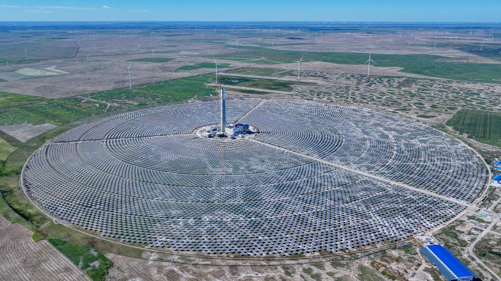 这是位于吉林省大安市的鲁固直流100MW熔盐塔式光热电站。新华社发