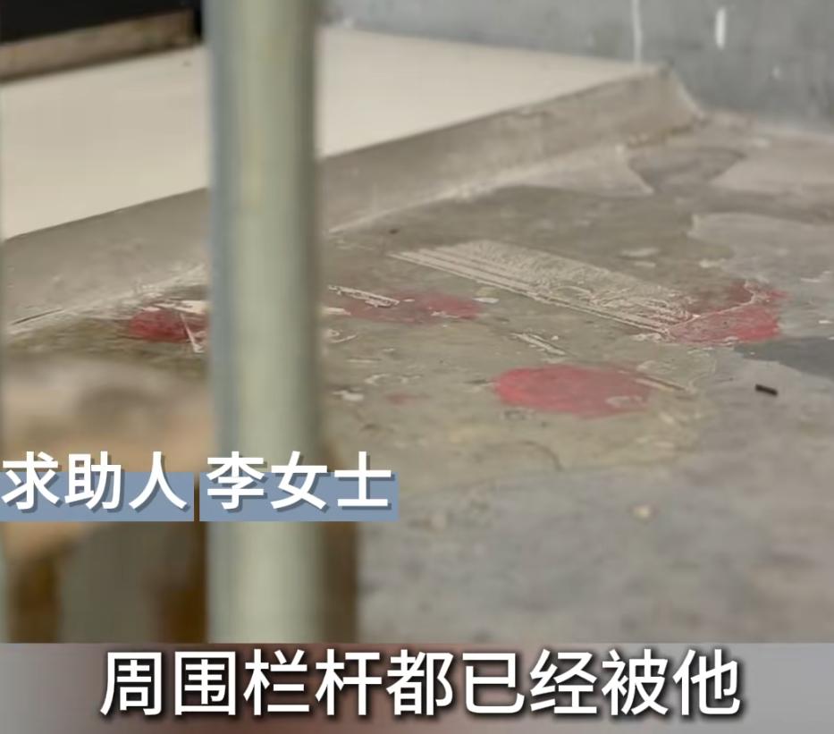 最近小区正在翻修,李女士称楼道内的栏杆都已经被他尿得都腐蚀了。
