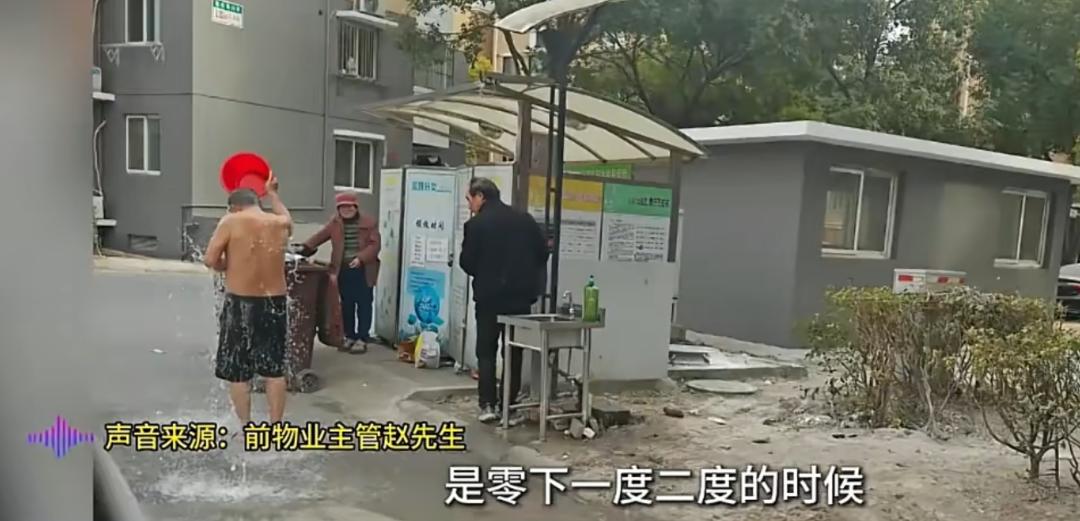 前物业主管赵先生表示,该男子即使在冬天零下的温度依旧在小区内洗澡,一天还要洗2次。