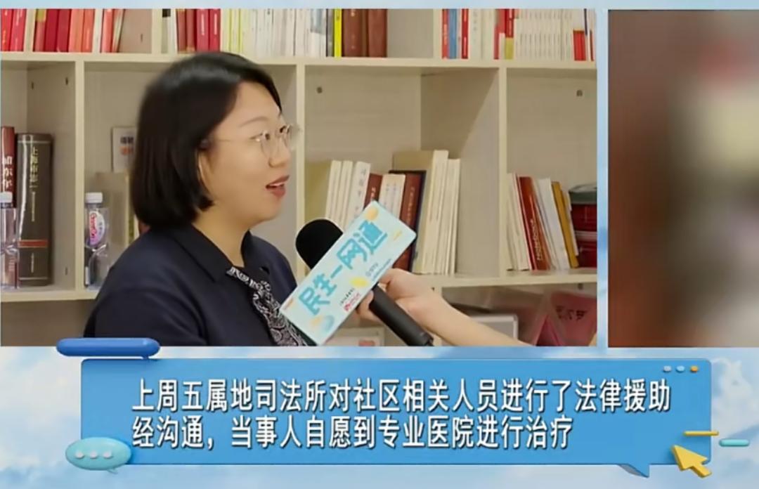 上周五,属地司法所对社区进行了法律援助,经沟通,当事男子自愿到专业医院进行治疗。据悉,该男子将在专业医院进行两个月的精神治疗。