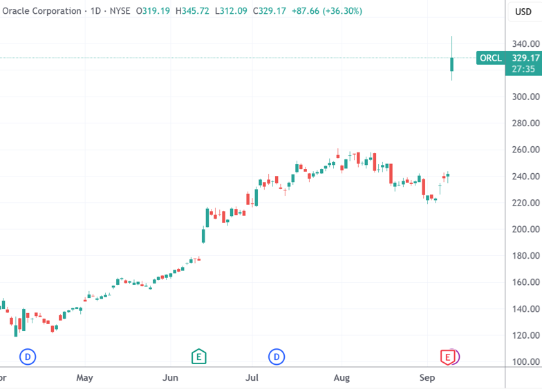 作为周三全球股市最拉风的个股,老牌科技巨头甲骨文日内一度暴涨超40%,使得创始人拉里·埃里森一度攀上世界首富的宝座。