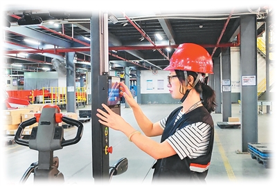 上午9时,顺丰广东东莞大岭山仓,传送带有序“奔流”。35岁的智慧仓运维员秦萍身着整洁工装,开始对仓内设施设备进行系统巡检。