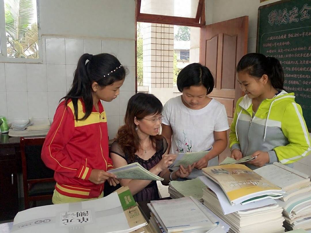 黄红梅(左二)生前为学生讲题。(屏山融媒供图)