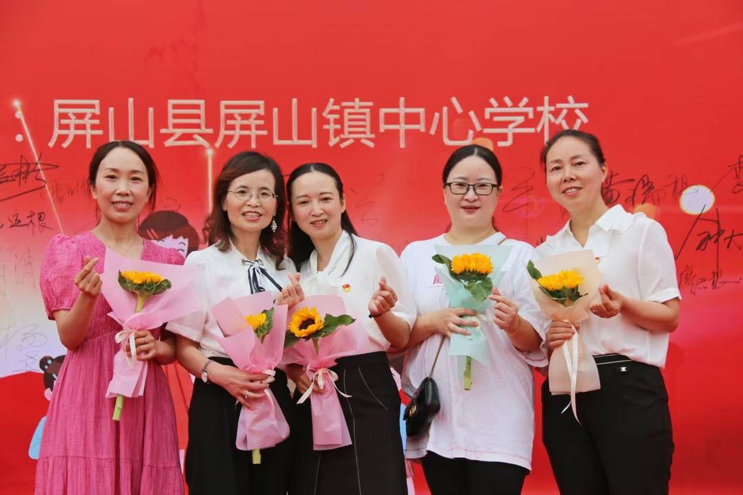 黄红梅(左二)和老师们一起合影。(屏山融媒供图)