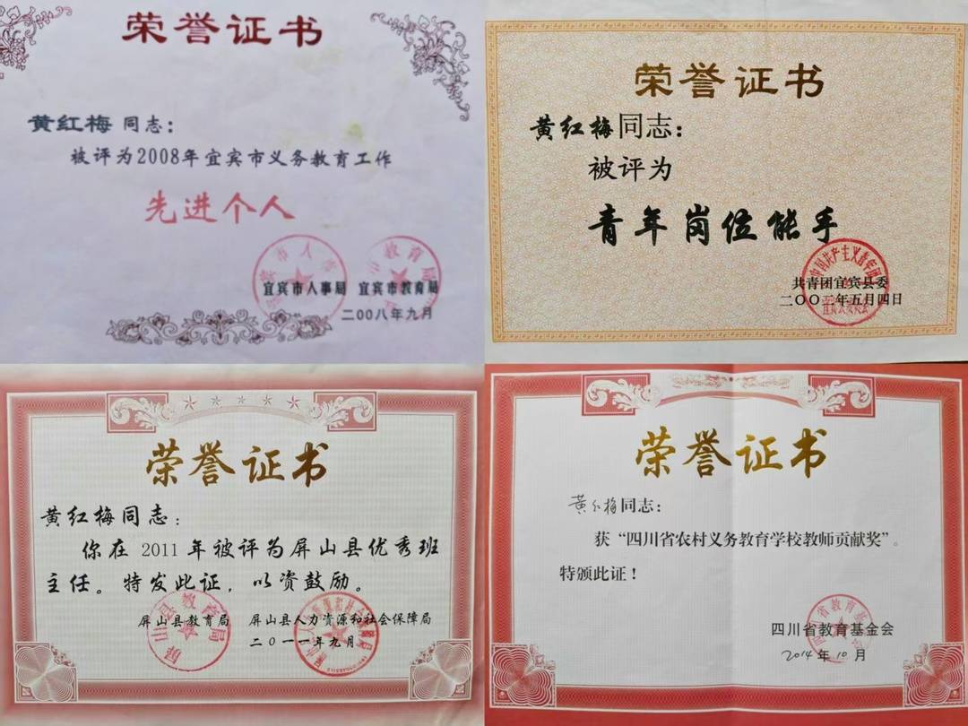 黄红梅的部分获奖证书。(屏山融媒供图)
