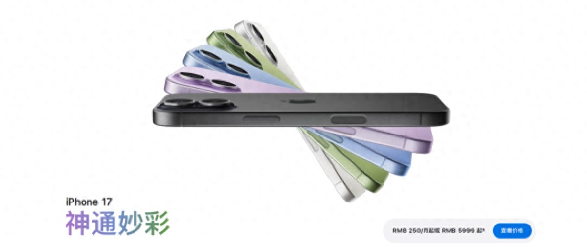 做为今年的数字款,iPhone 17的外观与上一代并无明显区别。本次主要提升在于刷新和影像两方面,iPhone17支持 ProMotion 自适应刷新率技术,最高可达 120Hz 。后置搭载4800 万像素融合式双摄系统,具备 2 倍光学品质变焦,默认设置即能拍出超高分辨率照片,前置摄像头1800 万像素 Center Stage 前置摄像头。芯片采用苹果全新A19 芯片配备 5 核图形处理器,采用第三代 3 纳米制程。