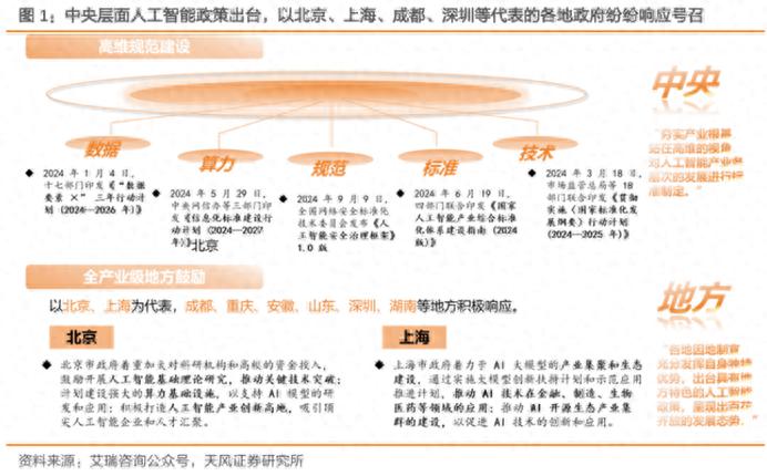 具体到产业集群分布情况,天风证券认为,我国产业集群发展总体呈现极化与扩散并存的特征,在地域关系上以北京、上海、广东为产业核心,通过区域内部和区域之间的紧密合作,打造出新一代人工智能产业网络空间;在企业簇群上以华为、腾讯、京东、阿里及三大运营商为核心节点,并通过与周边关系节点的交流合作,打造我国人工智能产业的复杂生态。