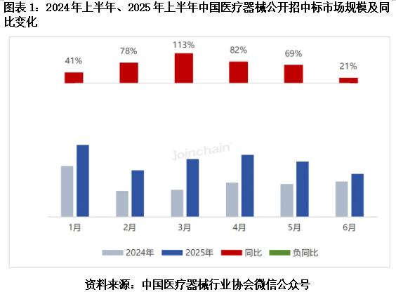 今年上半年,我国医疗器械招投标市场规模的确呈现复苏态势。中国医疗器械行业协会官微显示,据众成数科统计,今年上半年中国医疗器械招投标整体规模超800亿元,同比增长62.7%;1—6月每个月的市场规模均高于去年同期。