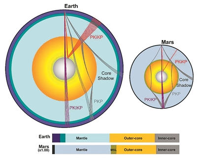地球(左)和火星(右)深部结构对比示意图。受访单位供图