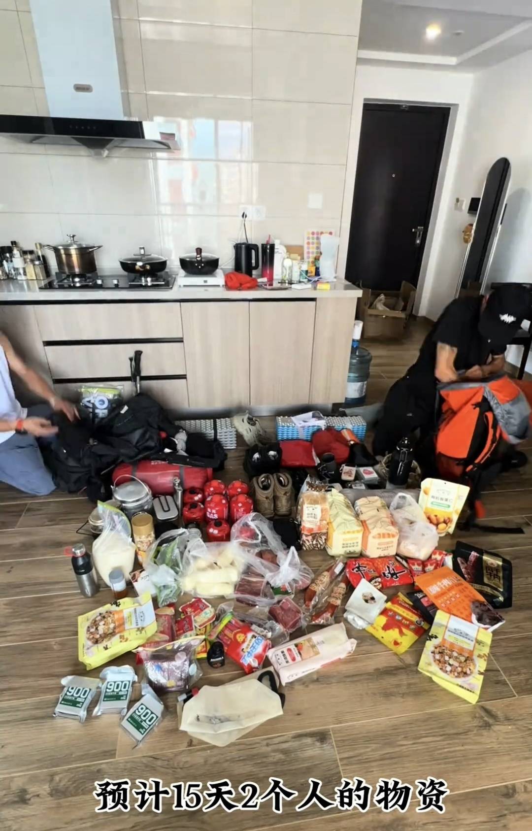 18日,两人的社交账号都发布了首日行程。视频中,他们各自准备了35公斤的物资,预计15天的行程。19日,李金伟发布最后一条行程内容后未再更新。