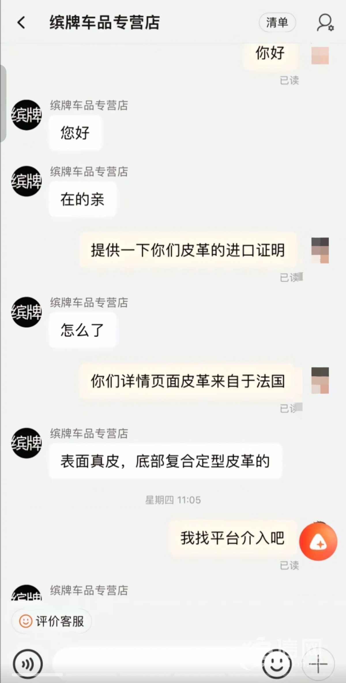 无独有偶,此前,市民王先生曾在天猫平台缤牌车品专营店内购买过一款“英菲尼迪专用山羊皮钥匙套”,商家宣称材质为“铝合金+山羊皮”,并且所用的羊皮来自于法国一家百年工厂,产品售价为92.6元。当收到产品后,王先生认为钥匙扣所用材质并非纯山羊皮,于是他询问商家客服,客服表示,产品底部是选用的复合定型皮革。王先生将情况反映至天猫平台,投诉商家虚假宣传,要求退一赔三。平台认为产品中含“山羊皮”,不是虚假宣传,拒绝了他的申请。