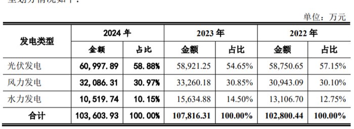 陕西水电主要运营的发电业务的类型划分为光伏、风电、水电业务,其中,光伏发电占2024年总营收比重近六成。