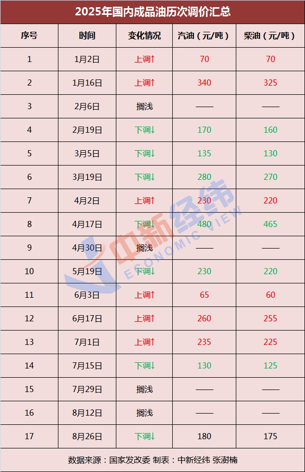 中新经纬注意到,今年以来,国内油价已经历17轮调价窗口,分别为“六涨七降四搁浅”。若本轮调价落地,年内成品油调价格局将变为“六涨七降五搁浅”。