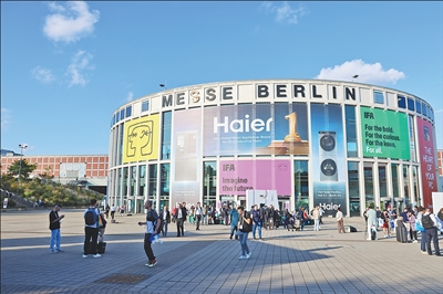德国柏林会展中心入口处,海尔等中企巨幅标识十分醒目。