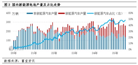 数据显示,2025年1-7月,新能源汽车产销分别完成823.2万辆和822万辆,同比分别增长39.2%和38.5%;新能源汽车新车销量达到汽车新车总销量的45%。近六年来,国内新能源汽车占比逐步盘整至50%附近,可见新能源发展态势之迅猛。伴随电池高镍化技术的持续升级,硫酸镍需求在未来仍有较大缺口,这对硫酸镍价格形成较强支撑,也会在一定程度上支撑镍价。