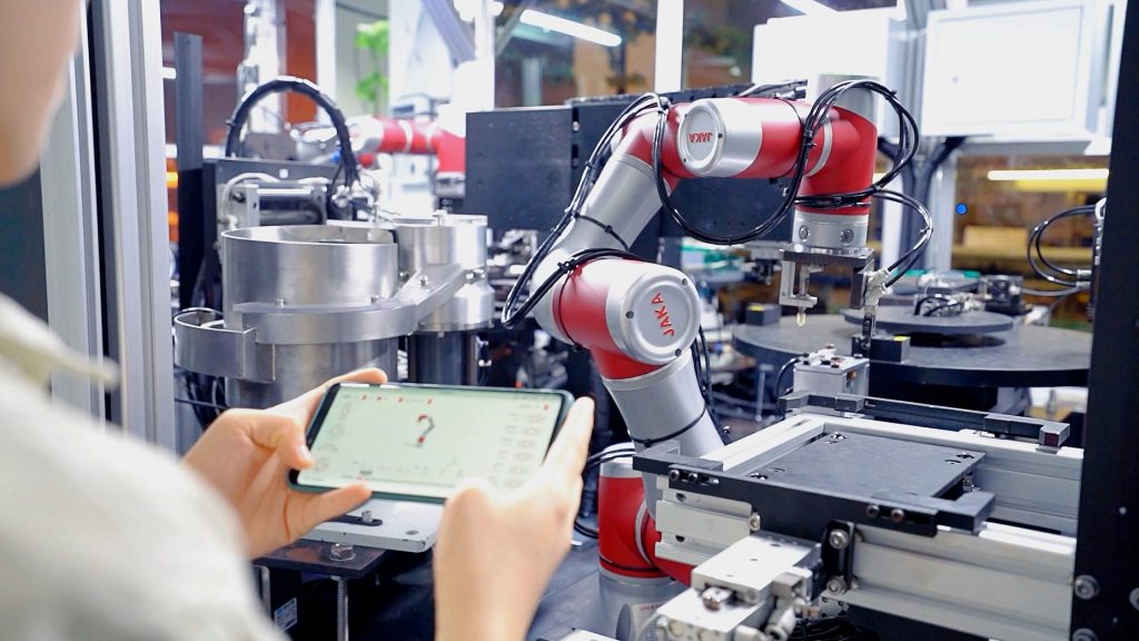 如今,在各种智慧工场中已经实现取料、搬运、放料、巡检、激光打标等工作由机器人完成。作为工业机器人的一个分支,协作机器人可以与人在同一个空间共同完成工作,既安全又灵活易部署,被广泛采用。节卡协作机器人就是通过“模块化设计”和“统一技术平台”,让同一机器人本体搭配不同末端、底部等工具来切换不同功能,满足不同场景需求。