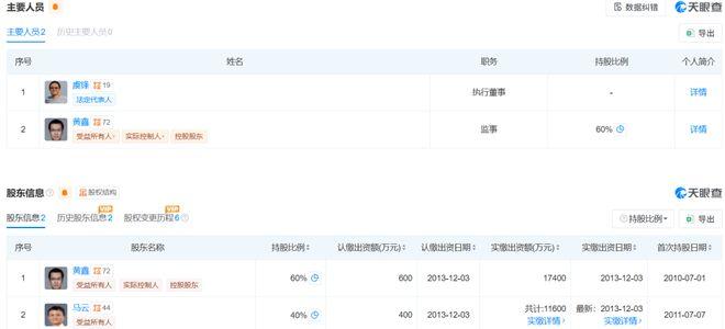天眼查显示,上海云锋投资管理有限公司法定代表人为虞锋,马云持股40%。