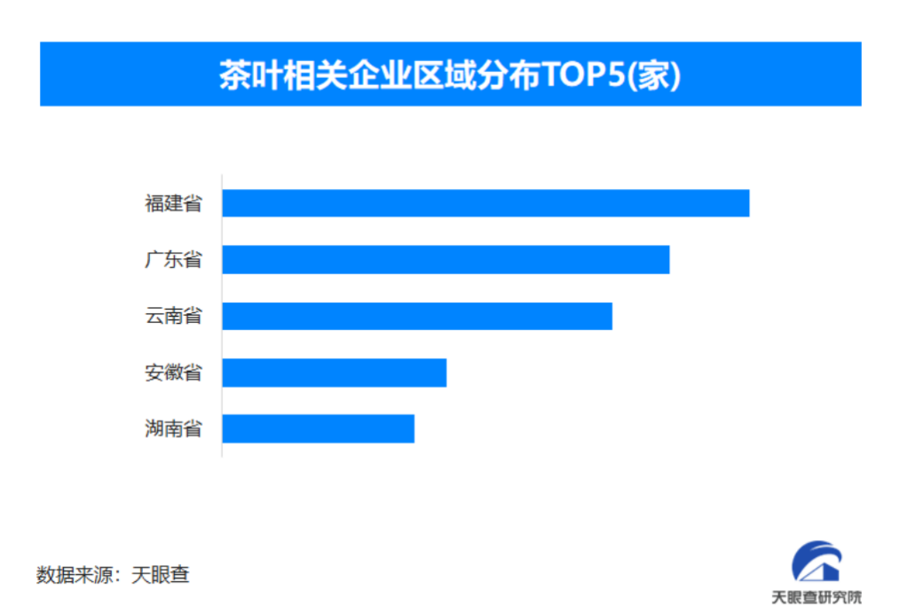 天眼查专业版数据显示,截至目前我国现存在业、存续状态的茶叶相关企业超163.5万家。从区域分布来看,福建省、云南省茶叶相关企业数量位居前列,三个省市数量总和超过65.5万余家,占企业总数的40.06%。