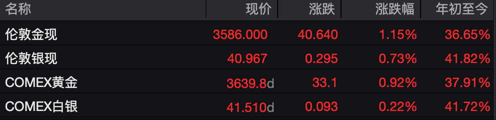 9月6日,现货黄金盘中一度大涨逾1%,突破3600美元/盎司关口,刷新历史纪录。截至收盘,Wind数据显示,现货黄金报3586美元,涨1.16%; COMEX黄金期货涨0.92%,报3639.8美元/盎司,同样再创新高。