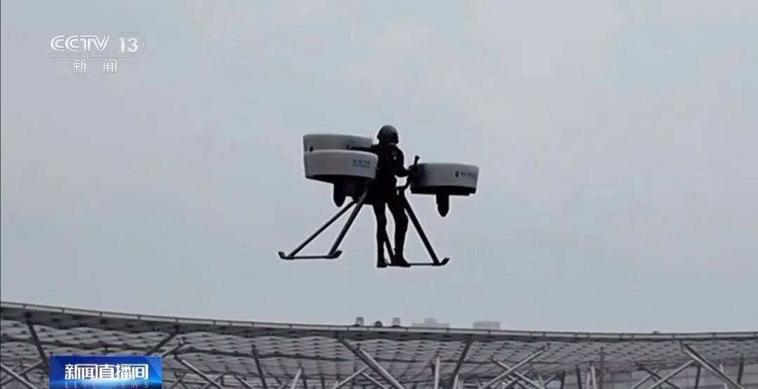 此前,飞行背包在会场外的指定区域进行试飞,为了保证安全,用的是假人。飞行背包还配置有一套自动弹射降落伞来���障安全。未来这样的飞行背包能带你体验1000米高度以下,10公里以上的空中飞行航程。