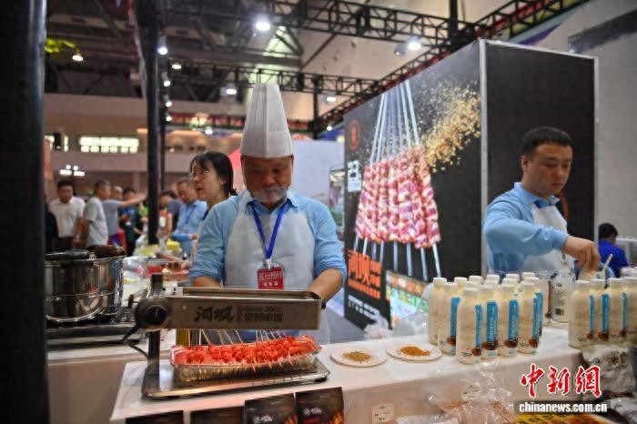 9月5日,展商现场展示烧烤。 张瑶 摄