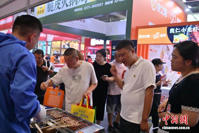 9月5日,观众在展会品尝烧烤。 张瑶 摄