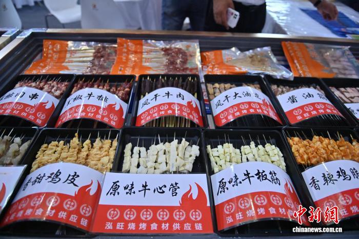 9月5日,展会上展示的各种烤串。 张瑶 摄