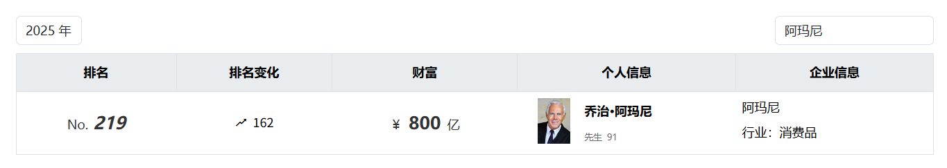 2025年3月27日,胡润研究院发布《2025胡润全球富豪榜》,乔治·阿玛尼以800亿元人民币财富位列榜单219位。