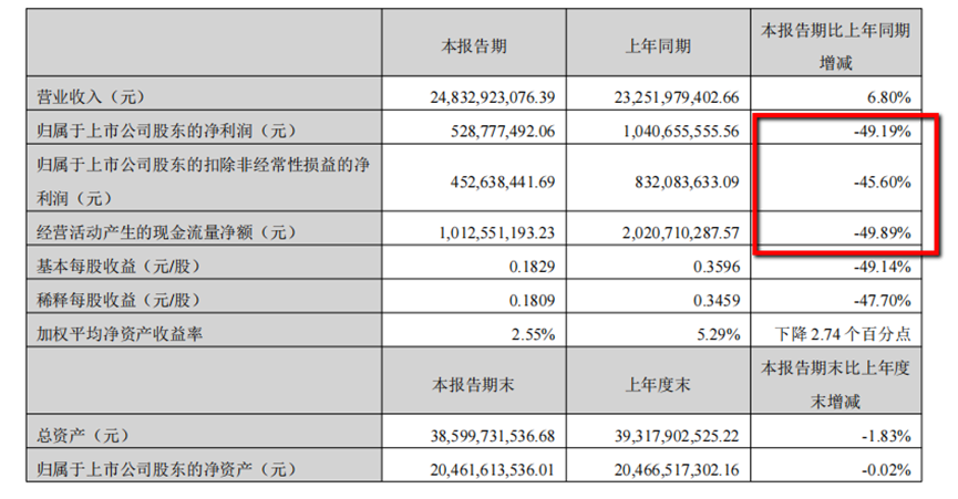 上半年韵达股份净利润近乎腰斩,同比下降49.19%;扣除非经常性损益的净利润4.53亿元,同比下降45.60%。同时,公司毛利率下滑至6.55%,较去年同期下降3.77个百分点。更为堪忧的是,公司经营活动产生的现金流量净额为10.13亿元,同比下降49.89%。并且,一年内到期的非流动负债增至42.07亿元,短期偿债压力陡增。